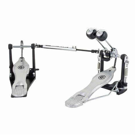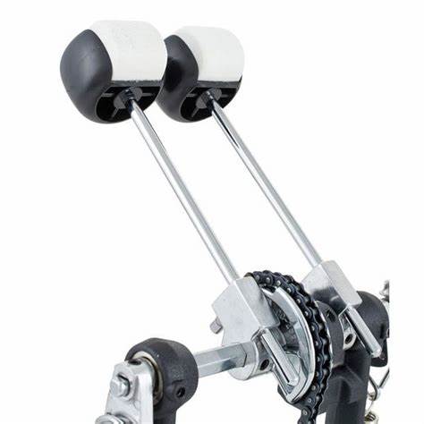 Pedal de bombo doble de cadena simple con plataforma en el pedal maestro con velcro en su parte inferior para una perfecta adherencia.